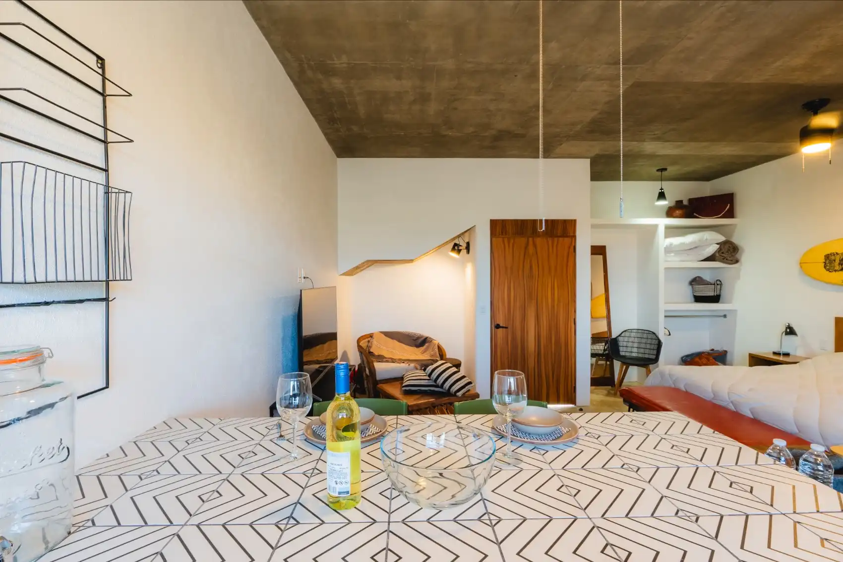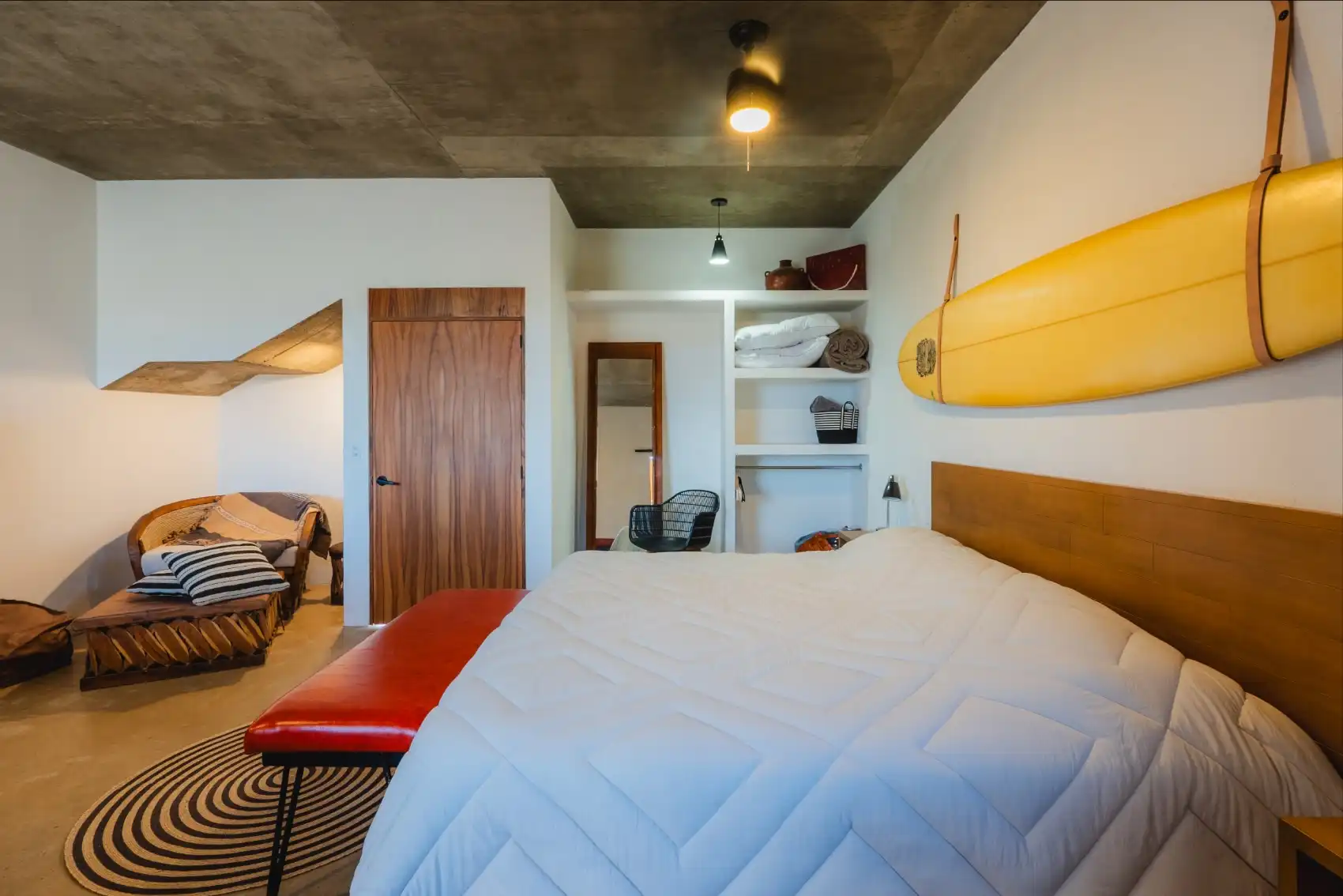 This modern studio-style suite is designed to offer both comfort and privacy, blending contemporary Mexican style with relaxing details throughout.