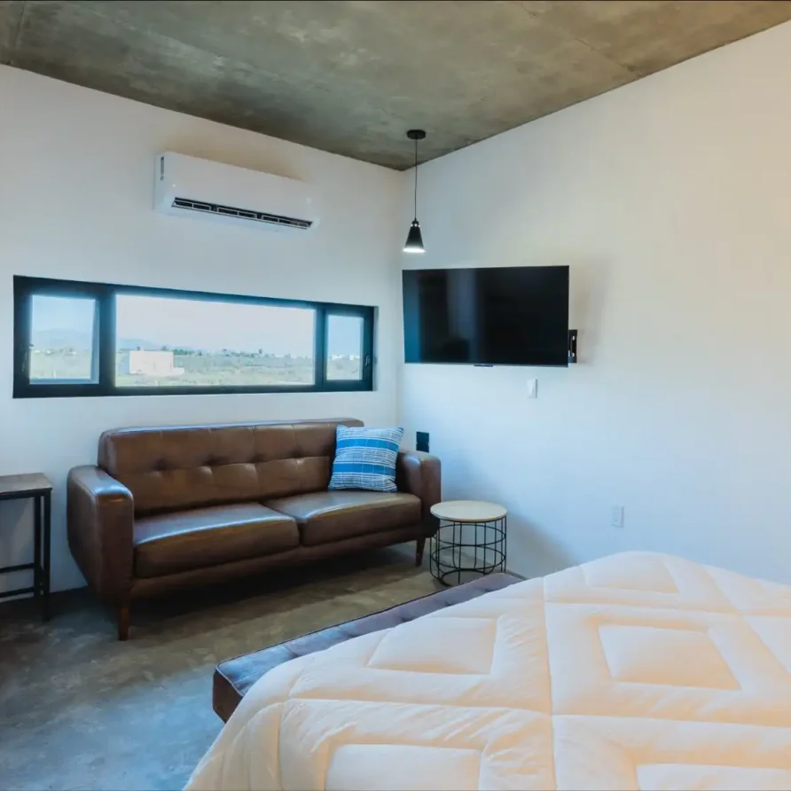 Find peace at Estudio Nido in Casitas Pacífico, a cozy hideaway surrounded by nature. Enjoy serenity, ocean breezes, and a rooftop view perfect for relaxing and reconnecting.